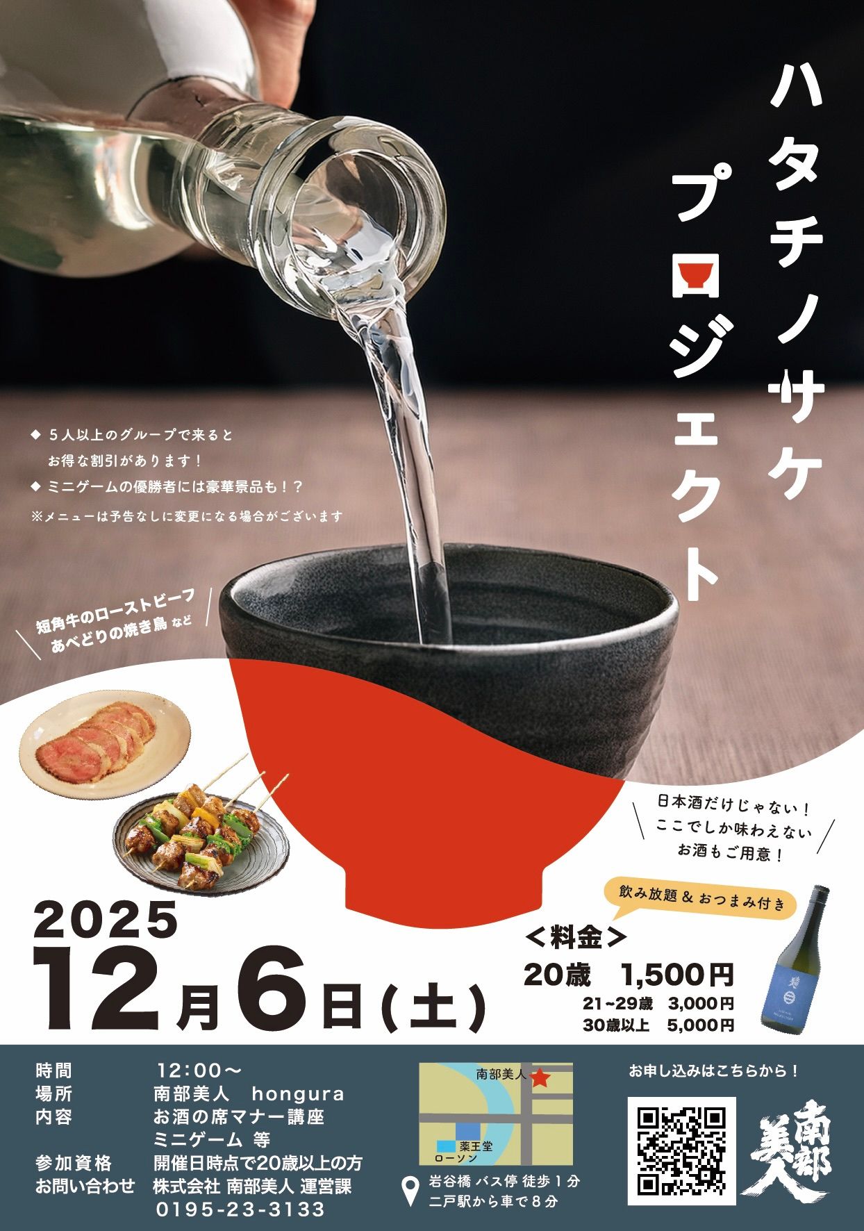 お酒のマナー講座やミニゲーム、南部美人ならではのお酒もご用意しています。