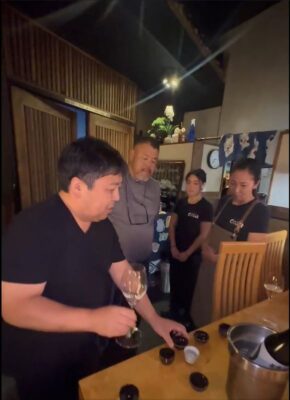サンフランシスコを後にして、同じくカリフォルニア州のサンディエゴにやってきました。この地は昨年お邪魔して、大変今後日本酒が伸びていくであろう地域で、2週間前には約1000人規模のサンディエゴサケフェスが行われています。そんなサンディエゴで大変お世話になっているDREAMPEER INCの伊藤久美社長、AYAMAさん、MASAKIさんを訪ねました。DREAMPEER INCさんは、南部美人の蔵にも社員さんを連れて見学に来てくれており、その際に二戸に来てくれた社員さんにも集まってもらい、懇談会を行いました。その会が行われる前に、会場の日本食レストランでオーナーシェフとスタッフさんへグラスに違いによる日本酒の味の違いの実践をしていただきました。本来なら東京の木本グラスさんの日本酒専用グラスを使いたいのですが、まだサンディエゴには無いので、ワイングラスとお猪口でこれほど同じ酒でも味が違う、という体験と理論の話をさせていただきました。さらに、このお店は南部美人のawa酒をメニューに入れてくれており、キャビアとシャンパンを用意して、キャビアにどれだけawa酒が合うか体験もしていただきました。レストランの皆さん驚かれており、DREAMPEER INCの皆さんにもさらに深い学びに繋がりました。