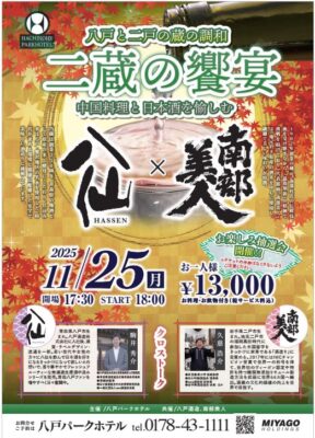 南部美人としては初となる、いつも大変お世話になっている駒井専務率いる青森県八戸市の「陸奥八仙」さんとコラボした酒の会を初開催します!!私も、もちろん参加します!駒井専務と一緒に八戸パークホテルで皆様をお迎えしますので、是非おいでください!東京などからおいでになる際は、是非東北新幹線「はやぶさ」のグランクラスでグランクラス専用南部美人を飲みながらおいでくださいね~。