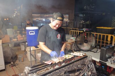 今回のロサンゼルス酒フェスではTippsyの伊藤元気社長が本当に最高のアイディアと仲間を引き連れて開催してくれました。Tippsyが創業するコロナ前にロスで元気社長にお会いして色々とご相談を受け、応援する、と約束した事が本当についこの前のように思います。ここまでロスで大きな試飲会が出来るネット通販の会社になったことを心から嬉しく思います。そして今回たくさんの蔵元も出店していましたが、それ以外にも多くのフードブースも出店されていました。ロサンゼルスを代表するレストランが出ており、ドジャースタジアムに出店して一気にアメリカでたこ焼きをメジャーにした銀だこさんはじめ、ロスを代表する居酒屋グループの本多屋さん、そしてお寿司のブースのWABI-SABIさんなど多数出ていました。夜は寒いロスですので、本多屋さんのおでんが最高でした!