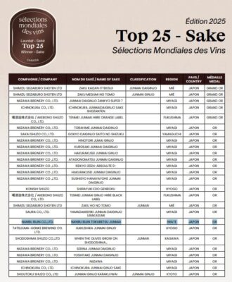 カナダのケベック州で開催されたSélections Mondiales des Vinsにおいて、南部美人特別純米は「トップ25 Édition 2025 Top 25 – Sake Sélections Mondiales des Vins」に選ばれました!!ゴールドメダルの中でもトップの25に入り、本当にうれしく思います!!近年カナダは日本酒の輸出が南部美人ではとても伸びている国で、このような素晴らしい賞をいただき、さらにこれからもカナダで愛飲していただけるように頑張っていきます!!引き続き応援よろしくお願いします!