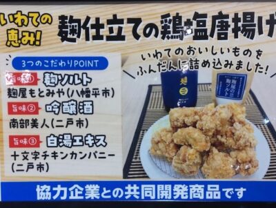 ここまでこっそり(笑)企画してきました、八幡平市の「麹屋もとみや」さんの麹ソルト、同じ二戸市の「十文字チキンカンパニー」さんの白湯エキスと南部美人の吟醸酒を使用した麹仕立ての鶏塩唐揚げを岩手県内の岩手生協さん店舗にて販売中です!3社のそれぞれの旨み成分をふんだんに吸収した唐揚げは白いご飯とも合いますが、それ以上にお酒が進んで進んでたまりません!!