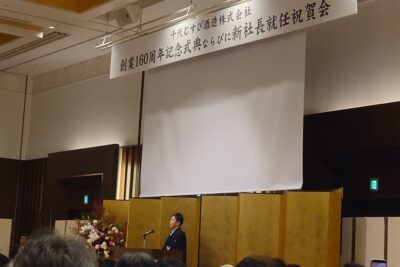 鳥取県境港市の「千代むすび」さんが160周年という事でお祝いの会に参加してきました。また新社長就任のお祝いも兼ねていて、awa酒協会でいつも一緒に頑張ってくれている岡空聡君が新社長に就任しました。awa酒協会メンバーはじめ、多くの蔵元、酒屋さん、地元の皆さんなどがお祝いに駆けつけていました。本当におめでとうございます!