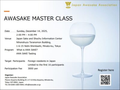 以下のように英語でのawa酒マスタークラスを開催します。