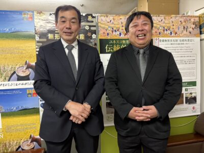 仙台国税局長の谷口眞司様が岩手県酒造組合においでくださいました。昨今の岩手の日本酒の状況についてなどお話しをさせていただきました。また先日発表になりました仙台国税局主催の秋の東北清酒鑑評会で岩手県の鷲の尾さんが最優秀賞、南部美人が評価員特別賞だったお話しにも触れられ、岩手県として高品質な酒造りを今後とも続けて行ってほしいと言われておりました。しっかりとこれからも頑張っていきたいと思います。