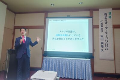 私が会長を務める二戸経済研究会の講演会が二戸パークホテルで開催されました。今年は講師にオーダースーツのSADAの佐田社長においでいただき、その壮絶な人生のお話しから、ユーチューブなどでスーツで山登りしたりスキージャンプをしたりするPRの考え方、そして大事な経営者としての心得を学びました。佐田社長におかれましては遠いところおいでいただきありがとうございます。