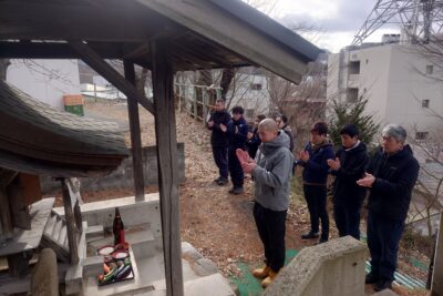 毎年12月13日は酒造りの神様である松尾大社の例大祭(醸造感謝祭)が行われます。全国の酒蔵では自社に祀る松尾様を拝み、酒造りの安全を祈願します。南部美人でも林杜氏をはじめ酒造りのスタッフで松尾様に安全祈願をいたしました。