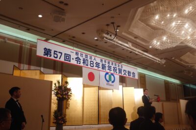 一般社団法人岩手県経済同友会の新年祝賀交歓会が盛岡市のグランドホテルで開催されました。達増知事をはじめ多くの来賓が参加して、岩手県の経済界の皆さんと新年の交流を行いました。代表理事でもある岩山岩手銀行頭取からのご挨拶で、2026年の岩手県経済の見通しなどもお話しいただきました。しっかりと2026年頑張っていきたいと思います。
