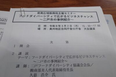 岩手県県南広域振興局が主催する講演会が奥州市で行われました。今回のテーマは「フードダイバーシティ」。私は二戸フードダイバーシティ協議会の会長として二戸市の先進例を中心にその考え方などをお話ししてきました。