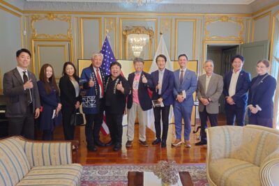 そのジャパンフェスティバルボストンを前に、髙橋総領事主催の昼食会が総領事公邸で行われました。ボストンで活躍する日本人経営者、日本食経営者、地元のテレビ関係者、そして日本のテレビ朝日からボストンのハーバード大学で学んでいる山口豊アナウンス部上級マネージャーなどがご招待されました。今回は昼食の前に時間をいただき、東京・上野の日本酒グラスの専門店「木本グラス」の木本社長と一緒に南部美人の日本酒を使ってトリプリングの実践もさせていただきました。高橋総領事はじめ、皆さん驚いていました。グラスが変われば酒の味も大きく変わる事、トリプリングの考え方、本当に素晴らしい昼食会でした。公邸シェフのつくる、大変有名になったスペシャルな和風クラムチャウダーと南部美人の特別純とのペアリングは最高でした。