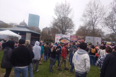 会場を歩いてみると、ラーメンや和牛、たこ焼き、お好み焼きなど日本のお祭りと同じような屋台が多数並びます。日本と違うのはそこに20人から50人の大行列になっています。さらに価格はラーメンは普通のサイズの半分くらいの大きさで25ドル前後します。木本社長はグラスの販売ブースをやりましたが、何と1個600ドルの黒い江戸切子はじめグラスはとても良く売れたそうです。日本のお祭りで10万円近い商品買う人はいないと思いますが、ボストンには結構いる事に驚きました。